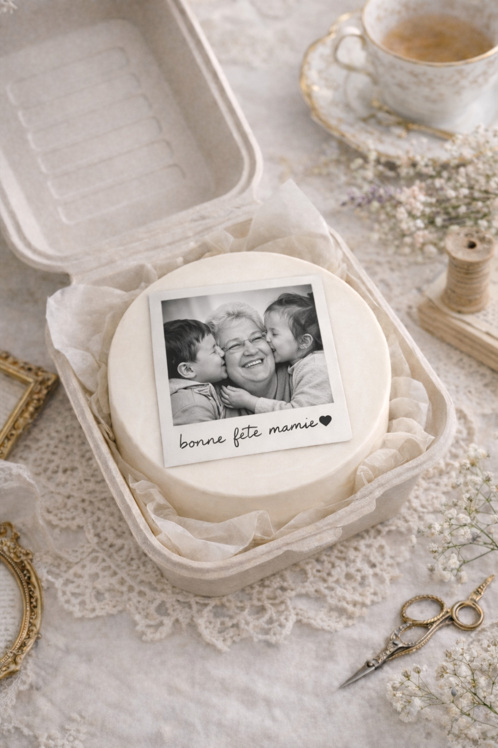 Apportez une touche unique et émotionnelle à vos créations avec cette photopolaroïd comestible, spécialement conçue pour sublimer les bento cakes.