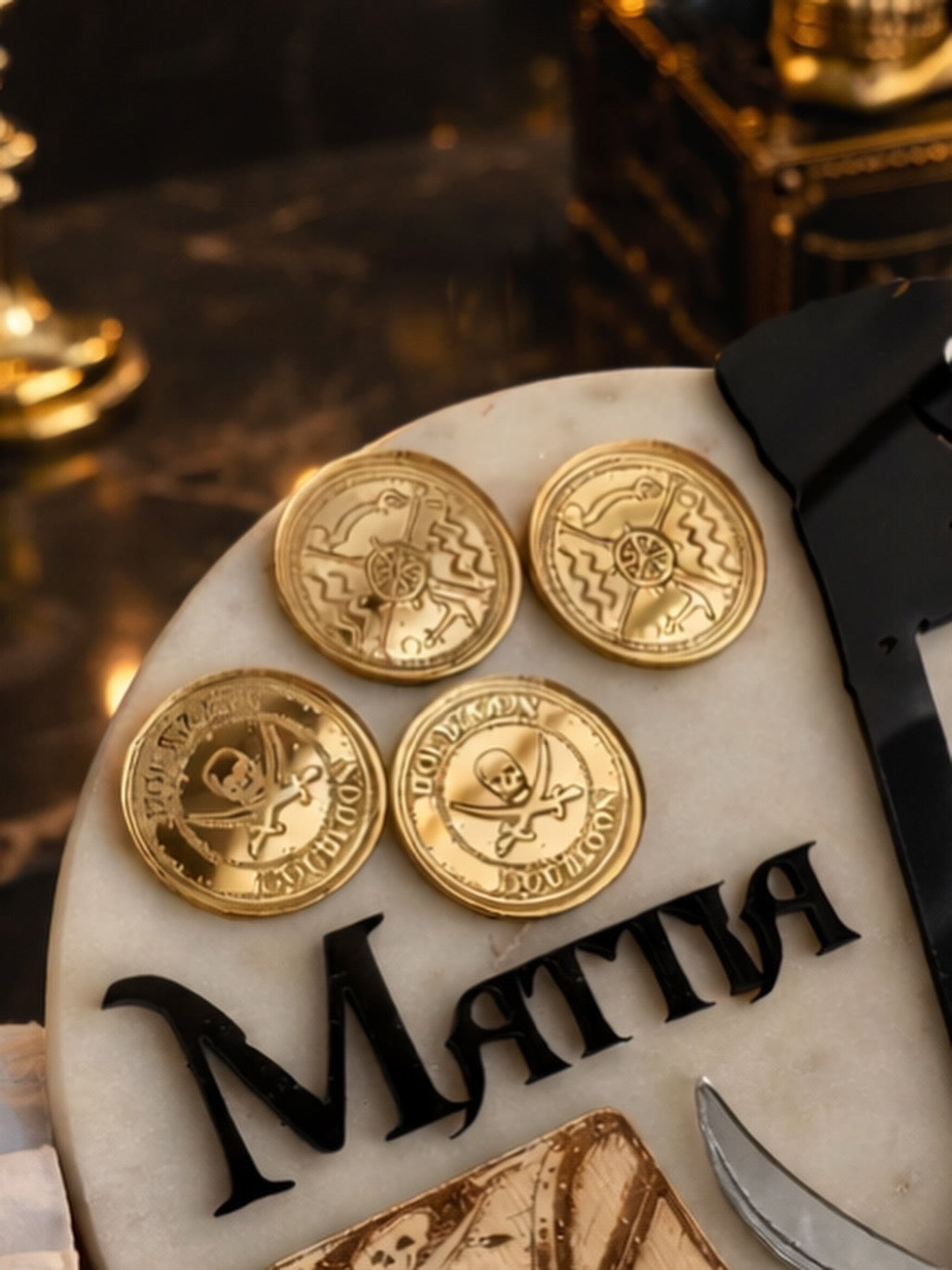 Plongez dans un univers d’exception avec nos toppers pirates, pensés comme un véritable trésor décoratif. Chaque élément a été imaginé pour apporter caractère, élégance et authenticité à vos gâteaux.