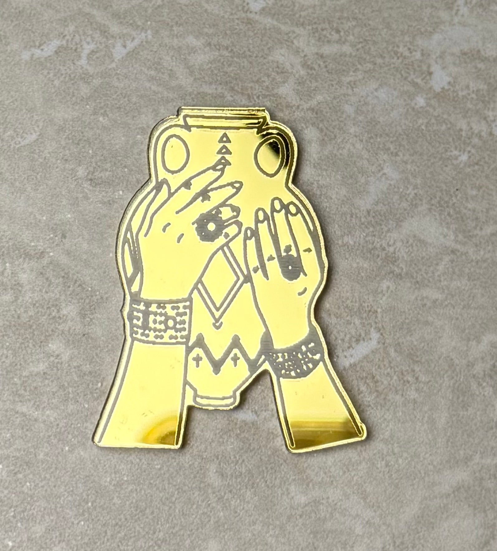 Attention image générée IA : rendu similaire doré avec gravure intérieure